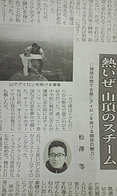 山や海、川などの厳しい自然環境下において、アイロン台を出し、涼しい顔で平然と服にアイロンを掛けるという、なんともスタイリッシュ(?)な極限的スポーツなんだそうです。 → 詳しくはコチラ